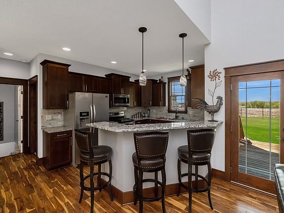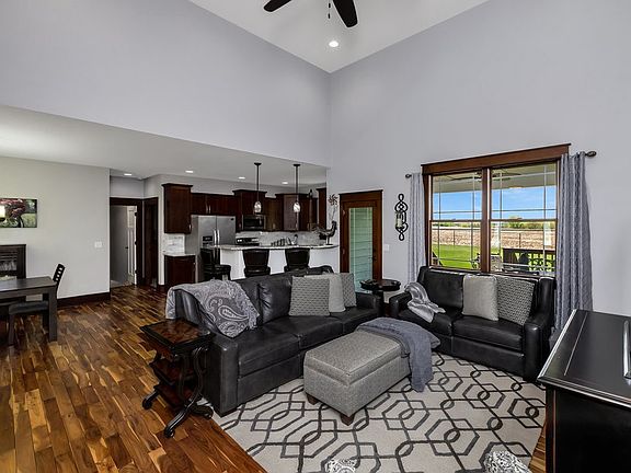 Beautifully custom built ranch w/3300+ sq ft of fin living space. No expense was spared in this home’s construction starting w/front porch entry w/composite decking. Inside front entry is acacia hardwood flooring w/all maple custom built trim. Living area w/lofty 16’ ceiling height & access to backyard & covered deck. Dining area nicely placed adjacent to kitchen w/cherry cabinetry, granite tops, marble backsplash & raised bar seating. Master en-suite is privately tucked to home’s backside. Light filled bath w/granite flooring, walk-in shower finished w/granite floor & marble surround and a 6’ tub. 14x 10 walk in closet w/custom closet storage. Dedicated laundry room w/cabinet storage, wash sink and slate flooring. Addl 2 bedrooms on other side of home are both 12x12 in size with a full bath in between w/travertine flooring & tub surround. Finished daylight LL w/huge wet bar w/stone accent wall & 2nd family rm big enough for multiple different gaming areas. Plus 2 addl lg bedrooms, a full bath w/travertine flooring & tub surround plus storage space complete lower level. The home’s oversized 3 car att garage is 24’ in length & freshly finished epoxy flooring. 34x45 shop space that is ½ unfinished & ½ finished complete w/heating&cooling. A fully fenced backyard w/garden area & added privacy of no neighbors behind or to your side. Don't miss the opportunity to own this exceptional home with a perfect blend of style & functionality. All info obtained from Seller & public records.
