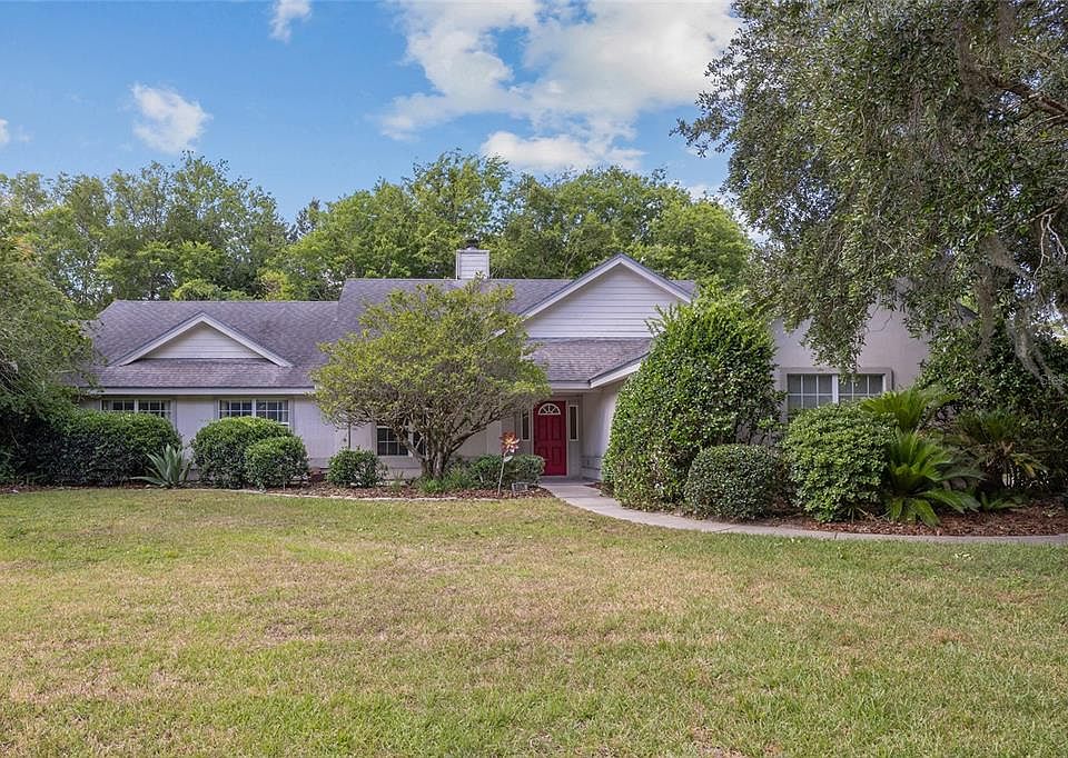 One or more photo(s) has been virtually staged. Welcome to this charming 4 bedroom, 2 bathroom home with 2,002 sqft of living space on 0.58 acres in a prime location in The Quarries! As you approach the home, you will appreciate the low maintenance yard with beautiful mature trees. Opening the front door and stepping into the foyer, you're greeted by vaulted ceilings and lovely hardwood floors throughout the living areas. To the left you will find a bonus space that you can use as a family room, playroom, or office, and to the right you will find the light and bright dining room that leads to your kitchen. The kitchen features solid wood cabinets, granite countertops, stainless steel appliances, and plenty of space to prepare food for your friends and family. Start your mornings with a cup of coffee in the breakfast nook that overlooks the screened lanai and secluded backyard. From the breakfast nook, step into your spacious living room and enjoy the wood burning fireplace on those cooler winter days. Open up the sliding glass door in the living room to your screened in patio and make the hot summer days more pleasant by jumping into the pool. The large, fully-fenced backyard provides plenty of space to play, relax, garden or entertain. Down the hallway from the main living areas are all the bedrooms and bathrooms. The primary bedroom has easy access to the pool through the french doors. It has an en-suite bathroom with double vanities, garden tub, a walk-in shower and a built-in closet. The three additional bedrooms share a bathroom which has a tub-shower combo and a door leading to the pool. The 2-car garage provides ample storage space for your tools, yard equipment and additional belongings. This neighborhood is conveniently located just a few minutes from Wiles Elementary School, Kanapaha Middle School, and Haile Market Square where you can find Publix Supermarket, restaurants, banks and more. It is also just a 10 minute drive to HCA Florida North Florida Hospital and a 20 minute drive to the University of Florida and UF Health Shands. Don't miss out on this amazing opportunity.