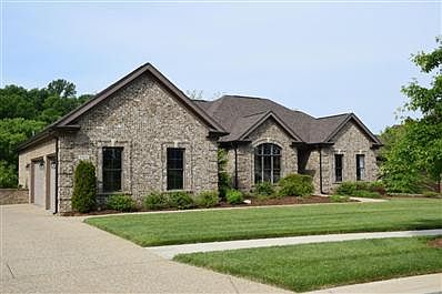 Old World charm w/a contemporary floor plan. Situated on a private lot just minutes form 265 and I71 is this split walkout one story home. As you enter the foyer your eyes are drawn to the wall of windows in the great room that overlook the heavily wooded rear yard. The formal dining room, great room and expansive eat-in kitchen are laid out in a harmonious style that is perfect for everyday living as well as the most formal of gatherings. You will enjoy having two separate bedroom wings for the privacy it offers:owner's wing and kids/guests' wing. The finished lower level offers a media room, fourth bedroom and 3rd full bath. Additional living space available on deck and covered patio. Click on Photos for additional information or call today for your personal showing!!