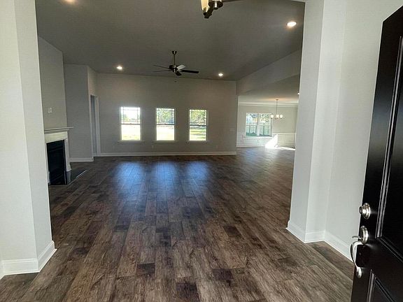 This beauty explodes with design that will leave you breathless! 2700 square feet of Brand New Custom Architecture that is MOVE-IN-READY. Featuring an Owners Suite with tray ceilings, puck lights, crown molding, a large walk-in closet, and three additional bedrooms. An open concept in the grand living area, with laminate flooring throughout. Granite countertops and an oversized kitchen island suitable for hosting family gatherings. This abode also includes a walk-in pantry, a half bath just off the two car garage entrance, a covered patio, gas log fireplace, stainless steel appliances, and a foyer that enables you to engulf this majesty at first glance. Schedule your tour NOW!
