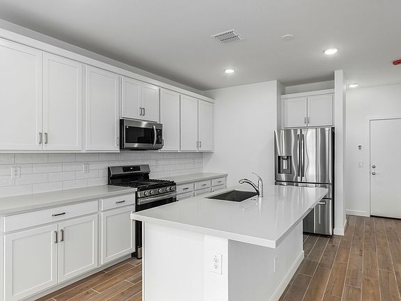 This 4 bedroom, 2.5 bathroom home with 1,850 sq ft that has been thoughtfully designed to seamlessly combine style and functionality. The stunning luxury vinyl plank flooring brings a touch of modern and warmth throughout the main living spaces, with plush carpet in the bedrooms. The chef's kitchens boasts gorgeous counter tops, ample counter and cabinet space, and a large kitchen island with breakfast bars perfect for hosting and gathering. Upstairs you'll find a large loft space which can be used efficiently to suit your needs, whether you desire a comfy lounge area, a children's play room or a family game room, the options are endless! The cute backyard upgraded with pavers and artificial turf is the perfect spot to hangout and unwind.