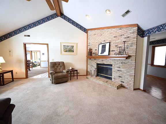 OPEN HOUSE SATURDAY JANUARY 28TH 1-3PM. Located on a .40 acre lot at the end of a quiet cul-de-sac, this spacious ranch style home offers 1911 sq ft, 3 bedrooms, 2 baths and a wonderful pond view! You will be greeted with great curb appeal that draws you from the front porch and in. The foyer with parquet flooring opens into the nicely sized Great room with a cathedral ceiling and a floor to ceiling brick fireplace! The efficient kitchen is nicely sized and has plenty of cabinet, counter-top and pantry space. All kitchen appliances remain with the sale of the home (the refrigerator freezer is not working). The dining area is open and leads you to an amazing four-season room! There is a large master en-suite with a vaulted ceiling and walk-in closet, plus there are two additional generously sized bedrooms. This home contains many extras – complete tear-off roof in 2012 with a 30-year shingle, Pella windows with slim shades throughout, over-sized garage, floored attic, multilevel deck, amazing pond views from 5/6 rooms in the home, separate laundry area, partial fenced area for extra privacy or a pet, six panel doors, professional landscaping, plus so much more! Water heater is 2019, furnace is approx. 5-7 yrs., roof is approx. 12 yrs. The driveway is new 2022. The multi level deck needs painted therefore FHA or VA is probably not going to be considered. Schedule your private showing today!
