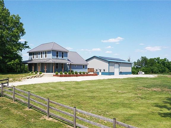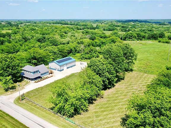 $52K Price Reduction! A RARE opportunity to own 18.5 acres just North of 210 Hwy! This property has beautiful views of clay county in multiple directions, 1+ acres of manicured grass, established timber, a babbling brook, places to roam and hunt, and privacy! The home has been completely renovated to the studs over the past 8 years, including raising the home and adding a walkout lower level! See the attachments to understand the depth of the remodel. The photos paint the picture and it will be apparent when you visit the property! Main floor boasts Living, Den, Dining, Kitchen, Mudroom, Pantry and Full Bath. Second Level showcases 3 bedrooms (zoned HVAC in each) Full Bathroom and Laundry Options. Lower Level add another Living Room, Full Bath, Office (4th non-conforming bedroom), full kitchen, and walkout! Some of the exciting features found in the bones of this home are spray foam insulation, high efficiency HVAC, 75 year metal roof, new concrete flatwork, SOLAR!!!, backup generator, wood burning auxiliary heating, and so much more! The home is tastefully finished with everything you will need to live happy! The charm of an old farm house, with all the modern conveniences! You will enjoy countless sunrises from the new deck, sunsets from the covered front porch and the excitement of watching storms blow in! Don't forget the storm cellar just in case! For those shop enthusiasts, you will drool over the huge shop with multiple access points, 16’ tall sidewalls, loft, and room for cars, storage, tractors, and projects! This home and property are the perfect set up for a generational homestead! YES to be able to do everything - horses, cattle, chickens, goats, motorcycles, atvs, hunting, farming, gardening, star gazing, storm watching, RV parking, equipment storage, we could keep going, but you get the point!