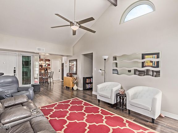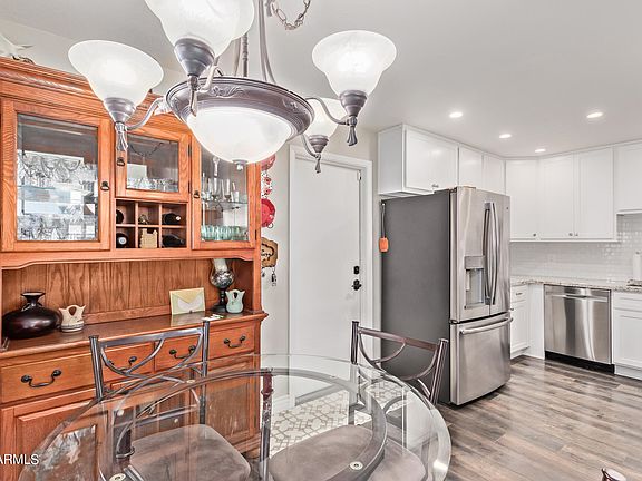 Gorgeously remodeled home with split bedroom floor plan, high ceilings (popcorn removed), new lights, new flooring, new Shaker cabinets through-out, trend-setting granite counters, all hardware and plumbing updated, new windows through-out, new sliding glass doors, roof is approx 2 years old and A/C is approx 7 yrs old. Baths have tastefully tiled floors, tiled shower surrounds, plumbing, lights baths have vanities that are high enough for tall people! Master bedroom split from other bedroom. Master has Walk-in Shower. Cozy brick fireplace, lots of light, tastefully two-tone painted, etc.! Convenient to 101 freeway, shopping, entertainment, (Westworld), hike/bike trail, TBird city park (Pickleball, Tennis, kids sports) Gate access to backyard for your convenience! Garage workspace