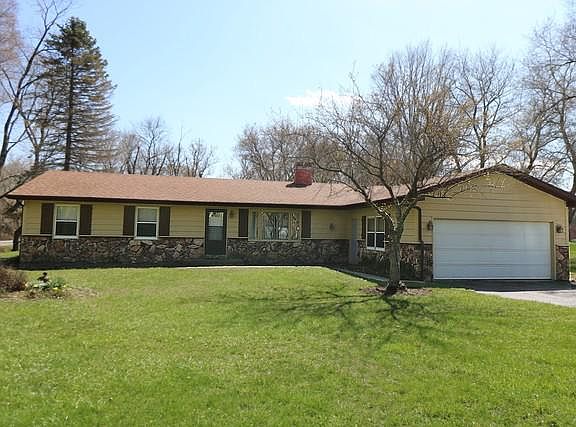 Enjoy country living yet you're just minutes from town, shopping, restaurants, and the lake! This sprawling ranch is situated in a park like setting on a large private lot just under an acre. There is a fireplace in the living room, new carpets in the main part of the house and a couple of the 3 bedrooms, there are 2 1/2 renovated bathrooms, and a spacious kitchen with access to a large screened 3 season room with vaulted ceilings and which is overlooking a private back yard with plenty of room for outside activities or simply enjoying the wildlife and serenity. There's a large deck off the back of the house and just beyond the laundry room is a private bar and rec room with a 2nd fireplace ideal for entertaining. The long driveway provides space for plenty of parking and you're also conveniently within walking distance to the elementary school! Make this your Home Sweet Home!