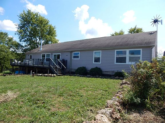Well-established & well-maintained farm with live water & large home on full basement only 1 mile from pavement, 9 miles from town, & 1.5 miles from Beaver Creek. This farm is really well set up based on Temple Grandin principles with 9 pastures & 6 paddocks & 2 ways to get livestock in & out of every pasture. Solar-powered well feeds 2 tire tanks with floaters that serve 7 pastures. Farm will sustain 20 head with no effort & up to 100 head if highly managed. Water includes 5 ponds, 2 of which are year-round spring fed, & a wet-weather creek that runs 90% of the year. Buildings include 30x40 shop, 26x100 machine shed, 30x72 high-tunnel greenhouse, 40x60 hay barn, 20x30 chicken barn, & 12x20 milk barn. Food production includes sorghum field; raised garden beds; apple, pear, plum & peach trees; blueberries; elderberries; blackberries; mulberries; & grape vines. House has nice, dry, full basement that includes an 8x8 safe room with 8'' concrete walls & ceiling. Heat & air are geothermal, but high-quality, custom-designed wood stove fully heats the house. Solar system to house & 2 sets of outlets (1 electric & 1 solar) in basement. This is a high-quality home that you would not think was manufactured.