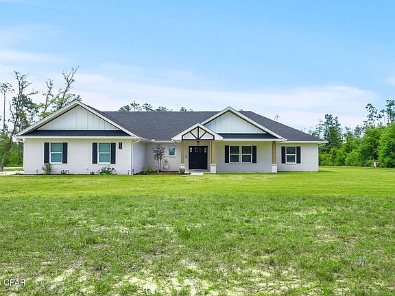 This picturesque custom brick home sits on two acres in one of the most desirable areas of Bay County Florida! The location is central only minutes to parks and boat ramps at DeerPoint Lake and North Bay, Downtown Panama City, Pier Park, Panama City Beaches and Tyndall Air Force Base. Some of the extras include coffered tray ceilings, tile floors, custom blinds, soaking tub, separate shower, huge walk in wardrobe master closet, spacious bonus , pantry, laundry and mud rooms, 2 zone HVAC, insulated 3 car garage, outdoor shower, hot/cold exterior water, well for irrigation, wired for whole /partial generator and electric vehicles. The open kitchen is a chef's dream with an island that overlooks the huge living area with even more built ins and an electric blue tooth fireplace. This amazing home has so many designer finishes and upgrades that must be seen in person to appreciate! No HOA! This one of a kind property will not last long. Schedule a tour today of your forever Florida home!