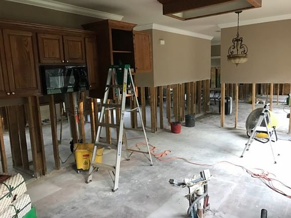 THIS HOME FLOODED WITH ABOUT 3 FT WATER IN AUGUST AND IS IN NEED OF REPAIR.This spacious home would be perfect for a growing family or investor. As you enter this home through the front door you will be greeted to the large living room with beautiful crown molding and recessed lighting. The kitchen features an abundance of beautiful red oak stained custom built cabinets, travertine backsplash and an eat-in kitchen area. The kitchen opens onto the den and three bedrooms which are split from the Master bedroom located on the other side of the home and features a separate sitting area. The master bathroom is just off the master bedroom and features a his/her walk-in closet. The exterior features an oversized lot, a four car rear carport and a two car garage which can also be used as a storage room or work shop. The backyard backs up to a wooded area giving you some extra privacy. Great Neighborhood. Great Schools. Great Location. Great Price.