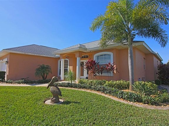 Welcome to the desirable waterfront community of South Gulf Cove. The first thing you will notice when you arrive at this exclusive Floridian home is the professional landscaping with its abundance of shrubs, palm trees and lush St. Augustine grass. When you enter the home through the double front doors you will immediately be captivated by the open floor plan and the large lanai. The split floor plan gives you that special privacy for the master suite, while still being able to view the pool from the master suite through the large sliding glass doors. The newly installed salt water swimming pool (2017) is heated and features a wading area. Have a cocktail poolside every night while taking in the picturesque sunsets of Southwest Florida. Enjoy the peace of mind with the newly installed hurricane screen on the lanai. A simple push of a button raises and lowers the screen for optimal protection from the elements. This home has everything you could ask for and much more! This area is home for the Tampa Bay Rays and the Atlanta Braves spring training. You'll love the close proximity to shopping, dining, entertainment, world class beaches, golfing and the convenience to multiple airports. Schedule your showing TODAY!