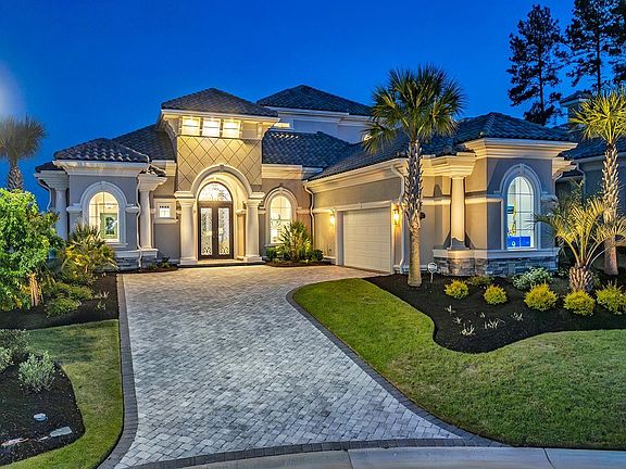 Welcome to 9407 Venezia Circle an exquisite Mediterranean residence nestled within the prestigious Villa Venezia section of Grande Dunes Golf Village. This home boasts over 4600 square feet of luxurious living space. The chef's kitchen is equipped with top tier KitchenAid appliances, custom cabinetry, Quartzite waterfall center island and countertops. The soaring ceilings with intricate trim work, fireplace, and built in shelving are complemented by numerous elegant light fixtures that illuminate the space. Marvel at the custom designed window treatments. The residence also features Chord porcelain tile throughout and thoughtfully designed custom closets. This stunning home features three spacious bedrooms, four luxurious bathrooms, and a versatile media/flex room that adapts to your lifestyle. This Oasis is designed for both comfort and style. Revel in the breathtaking views of the Intracoastal Waterway from your golf course lot, while enjoying the security of living in a gated and guarded community. Ideal for those who appreciate the finer things, this property boasts exceptional amenities, including a 25,000-square-foot Ocean Club featuring exquisite dining, oceanfront pools with food and beverage service, meeting rooms, and a variety of engaging activities. Furthermore, the community offers two 18-hole golf courses, multiple on-site restaurants, a deep-water marina, a Har-Tru tennis facility, and miles of biking and walking trails. This home envelops you in elegance and convenience, making every day feel like a retreat.