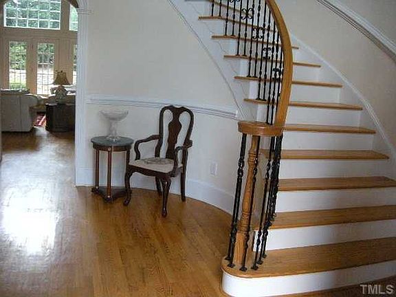 Beautiful estate home in great location close to all, restaurants, malls, RTP & airport. Hardwoods on main FL FGranite counters & center island in KIT, huge FR w soaring ceilings, FPL & built-ins. Sunroom & breakfast RM to patio. Main floor MBR w. luxurious BTH & W/D hookup. 4 BDs on second floor plus bonus w second stairway. 3rd floor features media RM w FPL, wetbar & full BTH.