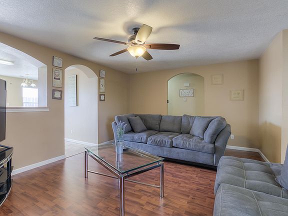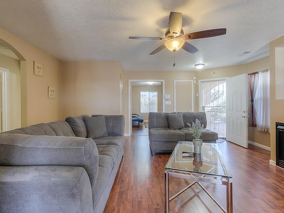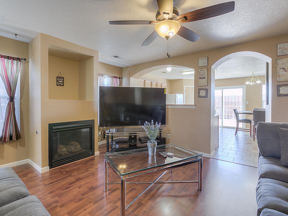 This delightful home features a large living room w/gas log fireplace, laminate wood floors throughout the house. Eat-in kitchen w/tile floors & pantry. Beautifully maintained home with 3 bedrooms, 2 living areas, and 2 baths. Master bedroom with private bath. Stylish full appliance package, with washer and dryer included. Fully landscaped front yard, attached two-car garage. 6ft Block privacy wall rear with no neighbors on the back! Built in dog run with shelter in the back. Garage has shelves for additional organization. Security camera system hard wired included, w/out monitor. Virtual tours available for qualified buyers.