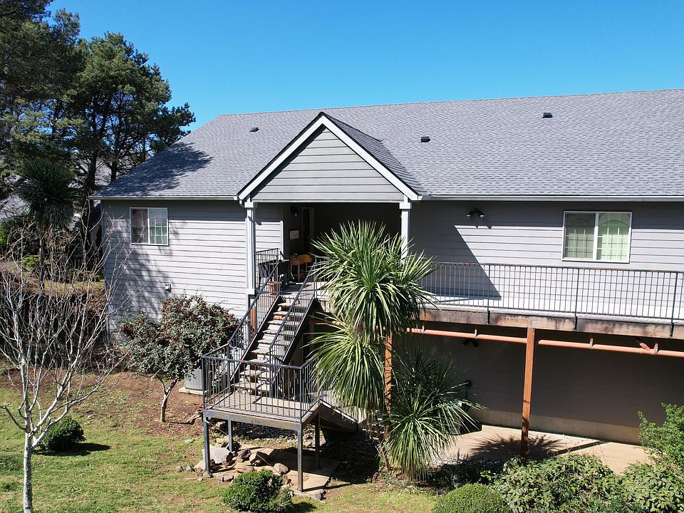 Welcome to your new home in the Chinook Townhouses complex! This contemporary townhouse offers the perfect blend of style, comfort, and convenience. This townhouse boasts 2 bedrooms and 2 bathrooms with an open concept design, allowing for spacious living areas with vaulted ceilings that create an airy and inviting atmosphere. Step into the primary suite and wake up to stunning ocean views. The suite features a slider to the deck and a walk-in closet, providing ample space and natural light. Parking is a breeze with the oversized garage, which includes an enclosed storage room for added convenience. Enjoy deeded beach access, allowing you to embrace the coastal lifestyle to the fullest. Plus, access your home effortlessly with an elevator that connects the garage to the main level. Additionally, there are walkway and staircase options for added flexibility. This property offers a prime location near the beach, shopping, dining, and more.