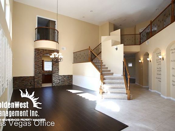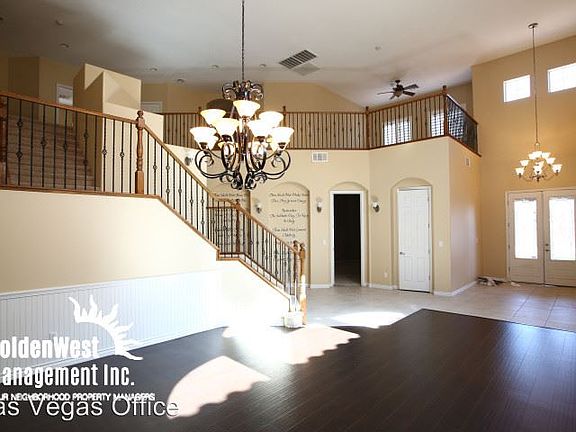 Double Master Bedrooms! 5 Bdm 3.5 bth 3 car garage in Arroyo Canyon! - AMAZING HOME! Walk into luxury! 2 spacious living rooms. Double Masters. Large master bedroom with bath on main level. Massive front room w/dark wood and tile flooring,custom paint, amazing stone wall and accents,vaulted ceilings, grand double sided staircase and beautiful open windows! Large kitchen with upgraded dark wood cabinets, granite counter tops, all stainless appliances, double ovens, 5 burner gas stove, microwave and fridge. Master retreat features strip views, double fireplace and sitting room area, large walk in closets and amazing 5pc spa like master bath. Huge master shower with 3 shower jets, large master jetted soaking tub and dual sinks. All bedrooms are oversized with walk in closets. Large upper loft with tons of space. 3 car tandem garage. Large laundry room with wash sink and plenty of cabinet space. Washer/Dryer and chest freezer stay. Owner pays landscaping. Call for private showing today! Must see! Please no pets. No Pets Allowed (RLNE4995858)