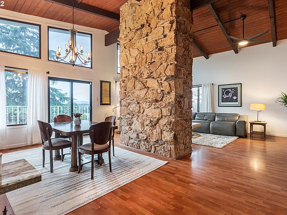 Gorgeous City & West Hills Views through soaring windows of this MCM w/vaulted beam ceiling great room. Original stone fireplace runs two stories as the centerpiece. 2 bedrooms up and 2 bedrooms + office + kitchenette down offers dual living spaces. ¼ acre lot with Tuff Shed, Workshop, Oversized Garage & boat or RV parking. Outdoor fireplace & dog run. Front deck w/peaceful sunset views. Freshly painted interior & classic 70s vibes intact. Walk to Max, hike/biking trails & Altamomnt.