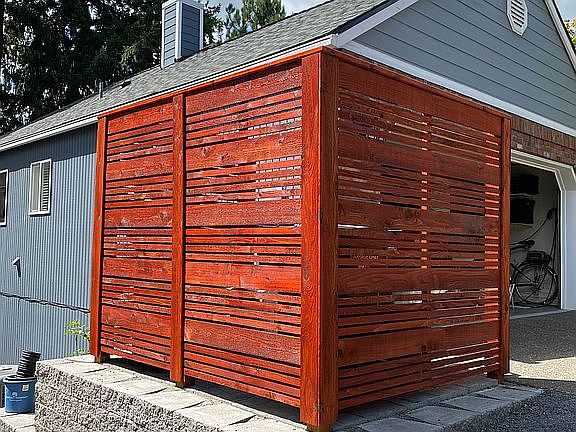 Hardwood white oak floors with satin finish throughout main floor; tiled entry, kitchen and both bathroom floors on main. Master, small bedroom, laundry room, living room, kitchen, dining room & 2 baths on main, both baths have skylights. Master en suite bathroom remodeled with granite counter top, walk-in ceramic tiled shower with glass accent tiles, full sized glass doors, quartz natural rock floor, and bench. Two niches for shampoo and soap. Downstairs, carpeted family room, 2 large bedrooms, 1 bath with shower, linen storage, furnace room & large storage room on lower level. Three decks, more storage under house in crawl space you can stand up in. Heat pump very economical to heat in winter & cool in summer. Solar panels added 12/2021.