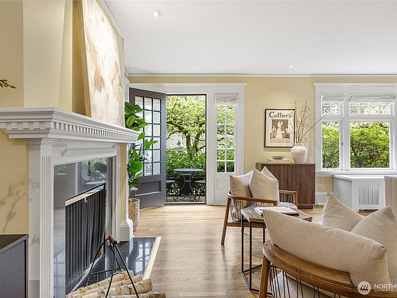 Sophistication personified in the classic 1920s building with grand spaces, hardwood floors and spaces that feel like a home. Beautiful classic finished including large open living room with central gas fireplace and small balcony. Entertain in style in this full-sized dining room. Updated kitchen with gas cooking and granite countertops. Two bedrooms including primary suite Possibility of a 3rd bedroom in additional large space flex room with fireplace for an additional bedroom or office or informal space Separate two car garage and additional storage. This special building is located in a coveted neighborhood on a tree lined street of grand homes. Walk to park, shops and the amenities of Capitol Hill.