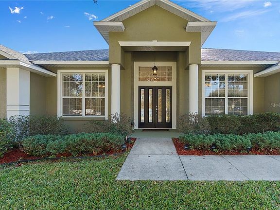 **MULTIPLE OFFERS RECEIVED** ARE YOU LOOKING FOR MORE SQUARE FOOTAGE? DO YOU WANT CURB APPEAL? Well, here it is! Nestled within the OAK'S in the GATED Community of COLLEGE PARK in CLERMONT, you will find this 4 BEDROOM, 3 BATHROOM split plan with an OFFICE/DEN/STUDY SINGLE STORY 2,523 sq ft home. A NEW ROOF was installed in MAY 2020 and the INTERIOR was JUST PAINTED. This WONDERFUL HOME is conveniently located close to SHOPPING, RESTAURANTS, SOUTH LAKE HOSPITAL, NATIONAL TRAINING CENTER and WALKING/BIKING TRAILS. Downtown Clermont is a great place to visit and is accessible to the Clermont Chain of Lakes. The VERY OPEN and FLOWING FLOOR PLAN features an OVERSIZED GREAT ROOM with 14'-6" Ceilings, a separate DINING ROOM and PLENTY of WINDOWS providing NATURAL LIGHT. Upon entry, you're sure to appreciate the ARCHITECTURAL ACCENTS. CATHEDRAL CEILINGS are featured in the GREAT ROOM and KITCHEN, while the DINING ROOM and DEN/OFFICE/STUDY offer VAULTED CEILINGS. Enjoy a GENEROUS sized OWNERS SUITE featuring a TRAY CEILING, LARGE OWNERS EN-SUITE with DOUBLE SINKS/VANITIES, GARDEN TUB, SEPARATE SHOWER and a LARGE WALK IN CLOSET. You also have access to the LANAI from the OWNERS SUITE. The other 3 BEDROOMS and 2 BATHROOMS are very generous. You're SURE to ENJOY preparing your favorite meals in the SPACIOUS OPEN Kitchen featuring SOLID 42" OAK RAISED PANEL CABINETRY, GRANITE COUNTERTOPS, BREAKFAST BAR and a CORNER PANTRY, all adjacent to the DINETTE. For your convenience, the Laundry Room even has it's own SINK, upper cabinets and the Washer/Dryer are included. If you're into OUTDOOR ENJOYMENT the COVERED 29'X10' LANAI and EXTENDED 36'X9' PATIO is a great addition of space. The BACK YARD is open, level and FULLY FENCED for your privacy. The ATTACHED 2 car garage offers a work bench with cabinets and pull down attic stairs. Some cosmetic touches are needed. Are you READY TO MAKE IT YOURS?
