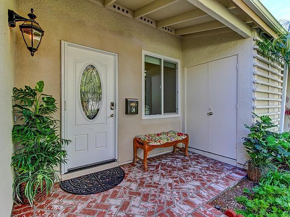 Complete Remodel. Beautiful Granada Model. No Steps. This owner did not intend to sell and this is not a flip. Top quality everything from New Brick Patio, New Front doors, All new windows and sliders, recessed lighting, scraped ceilings, crown moldings, New everything. The home has been gutted and has a Gorgeous brand new light and bright kitchen with up to date granite countertops, all new appliances, soft close drawers and opens up to family room. This model has a cathedral ceiling in family room. All new engineered floors throughout. Completely redone bathroom with porcelain tile, seamless shower door and walk in shower and full sized inside laundry. New central heat and air condition as well as relocation of the water heater to the outside of unit. Atrium has new tile and a re-designed wall. 55+ community with many amenities including 7 clubhouses, 5 pools, tennis courts, computer center, art studio, $11 for 18 holes of golf, equestrian center and much more.