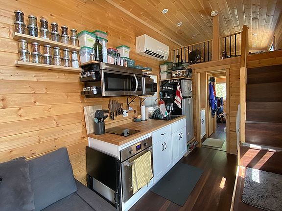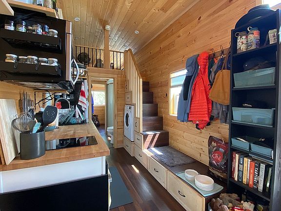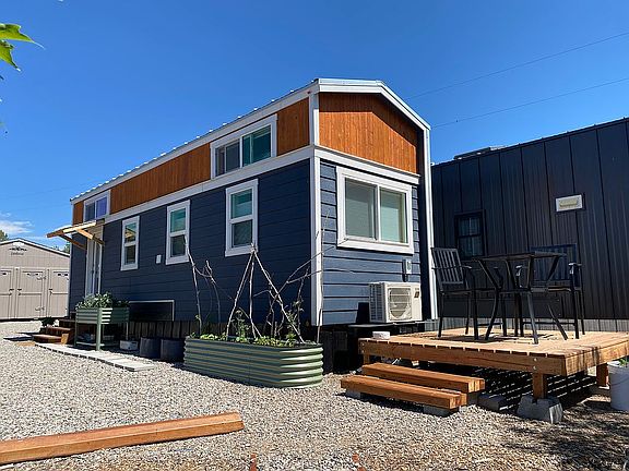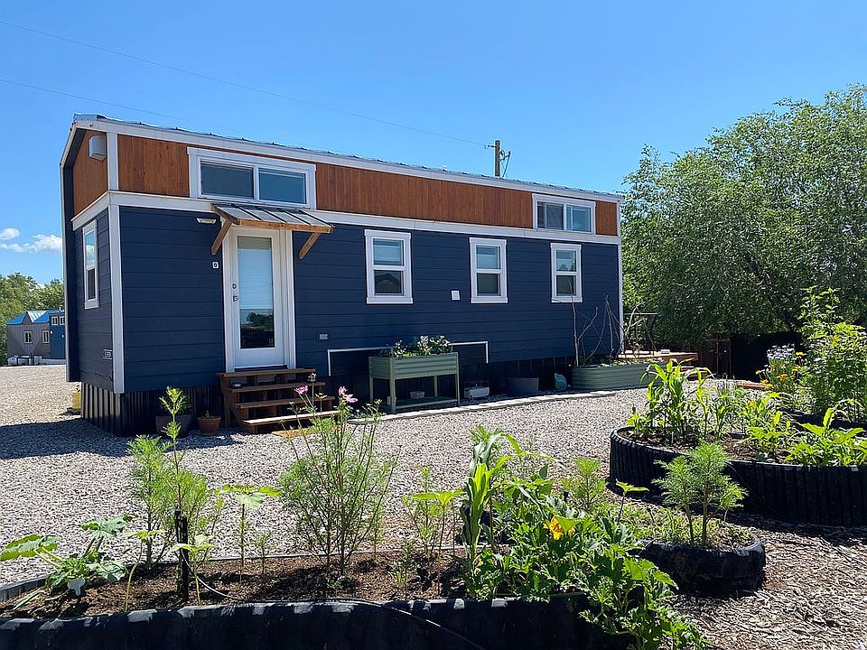 2022 Tumbleweed Roanoke 30’ tiny home for sale in Bayfield. Currently parked in the best spot in Marlin Village, an end spot next to the community garden and views of the horses across the street.