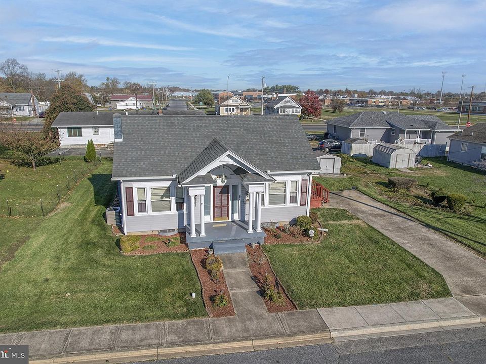Talk about location! This quaint well-built bungalow sits on a quiet tucked away street within walking distance to shops, restaurants, schools, and public transportation. Filled with charming original details including an archway to a sitting parlor off the living room, crown molding and original ceiling light fixtures. You will appreciate the main level made up of a living room and sitting room, and a formal dining room. The kitchen is a sunny space with two windows, granite countertops, a double sink, oak cabinets with pantry space, built-in microwave, and electric cooking. The primary bedroom, bathroom and laundry room equipped with a full-size washer and dryer also occupy this floor. Upstairs you will find a bonus room, the 2nd bedroom, and another full bathroom. Unique built ins are in both rooms in this area. There is also a partial basement awaiting the new owner’s finishing touches. The nicely landscaped exterior highlights the appearance of this home. Several low maintenance shrubs line the walkway to the pillared front landing. A side deck perfect for grilling is just off the kitchen. The back yard has a storage shed for all your lawn and garden equipment. This home is being sold as-is, however, it has been conscientiously cared for. The roof was replaced approximately three years ago. This home has so much potential for a new owner and an investor alike. The location is ideal, located minutes away from Dover Air Force Base, Bayhealth Hospital, and Bally's Dover Casino Resort. Convenient to Route 1 makes it a short ride to the Delaware beaches, Wilmington, Philadelphia, Washington DC, Baltimore, New Jersey, and New York.