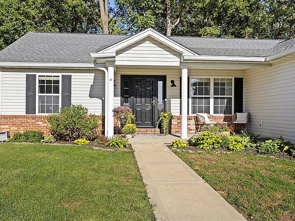 Welcome to this beautiful ranch home in the Lakes at Elmwood. This 3+ bedroom, 3 bath home has over 3,100 sf of living space and a bright, open, split bedroom floor plan. Enjoy vaulted ceilings, a gas fireplace, a separate dining area, and main floor laundry. Relax in the primary suite complete with a double sink vanity, dual closets, and a soaking tub with separate shower. The updated kitchen features gorgeous quartz counters, stainless appliances (all stay), and stylish white cabinetry. Head downstairs to a fully finished lower level, complete with a HUGE recreation area, a non-conforming bedroom/office, and an additional full bath. Entertaining family and friends is a breeze in the incredible outdoor space just steps off the kitchen. Enjoy the fully fenced, wooded backyard with mature shade trees, and two large wood decks. Millstadt Elementary and BTHS-West schools! Roof-2023.
