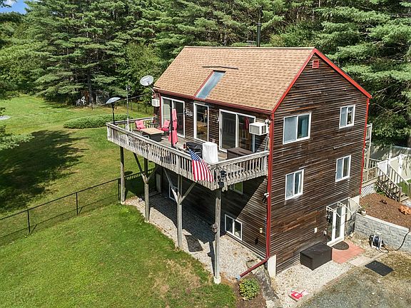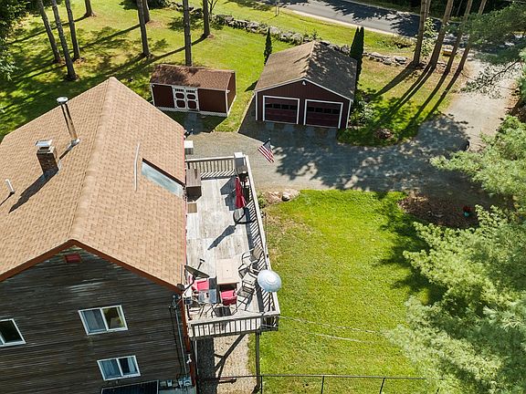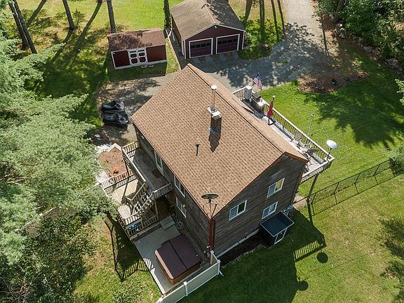 Move in condition! 3 levels of living in this contemporary style saltbox house. Plenty of living space with additional rooms for office, TV room, den etc. Lower-level entrance has a spacious mudroom, workshop, and office. Middle level has 2 bedrooms, full bathroom with laundry, office, and a separate entrance from the deck. Upper level is bright and light and is open concept with kitchen, living and dining rooms with 2 sliders out to the front deck that spans the length of the house. Multiple deck spaces and large flat grassy yard for outdoor living. Privacy fence around lower deck with hot tub and much of the 2 acre yard is enclosed in with discreet black fence. You and your company will love gathering in the back yard under the 12x24 festive covered cabana equipped with wet bar, refrigerator, and hot water heater. Showings begin Saturday 9/3/22 at Open House from 10am-1pm.