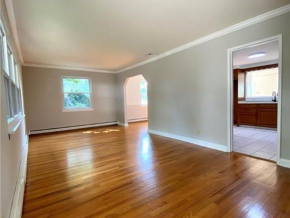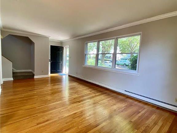 Nothing short of being cute as a button! Walking through the front door you'll be greeted by beautifully revamped hardwood flooring that flows through the living room and dining room. Dining room boasts built-in corner hutches & glass pocket door! Through the dining room you'll find the ample family room with plenty of natural light & cozy wood burning stove. At the heart of this home is the kitchen; complete with new stainless steel appliances, granite counter tops & newly rejuvenated wood cabinetry for a plethora of storage space! Rounding out the first floor is the full bathroom with new luxury vinyl flooring & first floor laundry. Upstairs you'll find immaculate wall to wall carpeting, built-in cabinetry for extra storage, three good-sized bedrooms, & second full bathroom. Heading down to the basement you'll notice the partially-finished area for a rec room with electric fireplace and large storage area with extra quarter bath! Run don't walk! This won't last long!