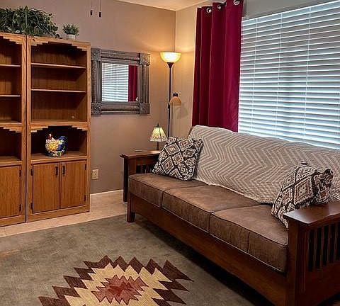 Fully furnished 2 bed 2 bath condo, located at the Reserve condominium complex, a beautiful gated community, on the north end of town. Adorable fully-furnished condominium includes new bed, stackable washer/dryer, pleasant fenced in small courtyard, pool, California closets in the master bedroom. Cozy, southwest decor.