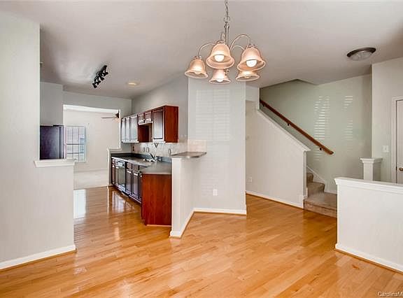 Great Location- minutes from theater, shopping, dining, and I-77. Wood flooring in entry hall, breakfast room and kitchen, food pantry, walk-in closets, black kitchen appliances, oak cabinets. This town home is located in the rear of the neighborhood. Minimal traffic. Private rear parking for two cars, roomy patio, outdoor storage, and an awesome full front porch. The community has a gorgeous pool and clubhouse! A must see!