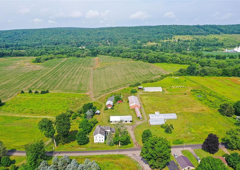 75 Acre Farm. Very unique property. This beautiful and well maintained 5+ bedroom 2 1/2 bath house has VERY LARGE rooms. Great Floor plan. Huge cooks kitchen. Oversized 4 car garage with a drive through bay. Mostly flat tillable land currently planted with soybeans. There is a Blueberry Patch & Apple Trees. A 26x46 & 30x90 commercial greenhouse. A 38x118 & 36x88 & a 23x38 3 story building, plus several other buildings. This is a must see if you are a farmer, or would like to be one, or maybe you just want a lot of room for your toys. Close to 2 towns and I-88. Land borders the Susquehanna River. Approx. 20 acres borders I-88.