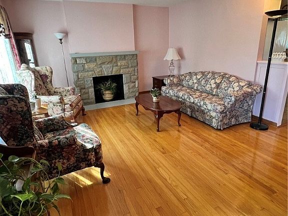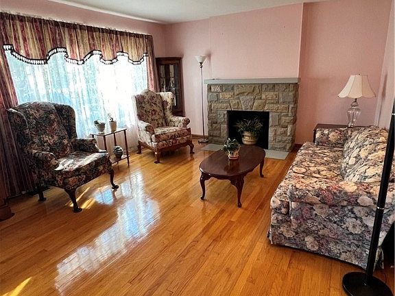 One car attached garage with opener. Updates include windows, water heater 23, electrical service and plumbing. Fireplace as is and not warrented never used.