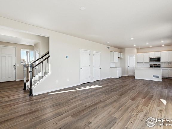 Complete now! The Fraser at The Overlook at Johnstown Farms features a versatile two-story layout with an abundance of flexible living and entertaining spaces. As you enter the foyer from the ample front porch, you will be impressed by a wide-open great room and a well-appointed kitchen - boasting a charming dining area with direct yard access, a generous island, and a corner walk-in pantry. Upstairs, you will find two gracious secondary bedrooms, a full hall bath, an expansive loft and a convenient laundry room. The lavish primary suite showcases a sizable walk-in closet and a private bath with dual vanities and a walk-in shower. Front yard landscaping is included. Nestled in Northern Colorado, The Overlook at Johnstown Farms is located in quaint Johnstown and offers residents ample open space and small-town charm. The neighboring communities of Loveland, Berthoud, Windsor, and Fort Collins are nearby with easy access to I-25 and the Denver metro area. Enjoy the convenience of living within walking distance of the YMCA, library, and an abundance of community parks, local restaurants and shops. Residents can also take advantage of nearby community events and attractions. Prices and incentives are contingent upon buyer closing a loan with builders affiliated lender and are subject to change at any time. Contact builder for specific details.