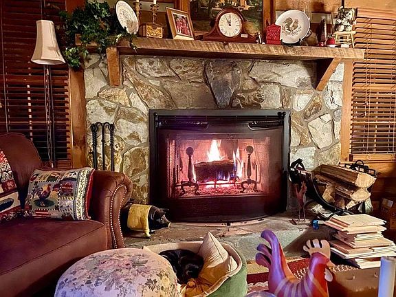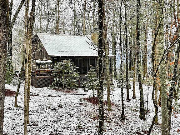 Escape to your mountain retreat nestled in the beautiful Blue Ridge mountains. Inside boasts an open floor plan, stone wood-burning fireplace, quaint chink log walls, and rustic hardwood floors throughout. Enjoy your morning coffee on the screen porch or on the patio and enjoy the peaceful surroundings. Close to nature with abundant wildlife. Listen to the rain on the tin roof and enjoy seasonal mountain views. Hidden Lakes community has a 1.4-mile walking loop and a stocked pond for fishing. This charming second-home has been well-maintained and is turn-key, furnished, and ready to move in or use as a rental property in a highly sought area. No HOA fees. Convenient to downtown Blue Ridge, Ellijay, hiking, fishing, and other outdoor activities.