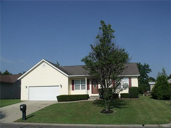 SOLD BEFORE PRINT. Super cute house in OFallon School District with easy access to I-64. This freshly painted home offers a split bedroom concept with a large Master Bedroom (new ceiling fan) and Master Bath (new lighting and vanity top) separated from the other two bedrooms. The entire house has new flooring, including both carpet and hardwood laminate. The Kitchen has a brand new glass top electric stove, new ceiling fan and tons of counter space. Basement partially finished with a family room and roughed in plumbing for a future bath. You'll love the large patio in the rear of the home for entertaining. New Langford Front Entry Door and New Anderson Front Storm Door too!