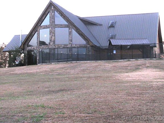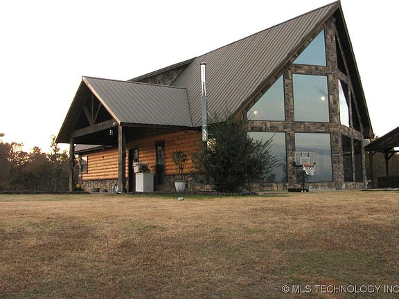 A large cabin on 40 acres all fenced with swimming pool, fishing pond, and private road. Home has a beautiful combination of rock and log siding capped off with a color coordinated metal roof. Inside you will find a uniquely designed floor plan ready to put your imagination to work. A beautiful staircase leading up to the second floor where a master bedroom awaits with a double door entry looking out towards the glassed-in back wall of the home. The bedroom suite has a large bathroom with a double sink vanity, a large shower with skylight and a raised whirlpool tub. Downstairs there is a very functional kitchen with lots of cabinets and work space. Down the hall are 2 more bedrooms, a utility room with washer and dryer hookups and another full bath. The living room has a wood burning stove for those cool nights. There are double doors leading out to a very nice swimming pool with a diving board at one end. At the other end of the pool is a fire pit to warm up against after getting out of the pool. And, if a storm comes up, there is an under ground storm shelter a few yards away. All of this sits square in the middle of 40 acres of all usable ground. Currently in hay production but is fenced for cattle. A short private road leads off of the blacktop for privacy but within walking distance of the main road. There is a deep well for water and sits in a well house that was built with stone to match the house. Call for an appointment and see if this is what you've been dreaming about.