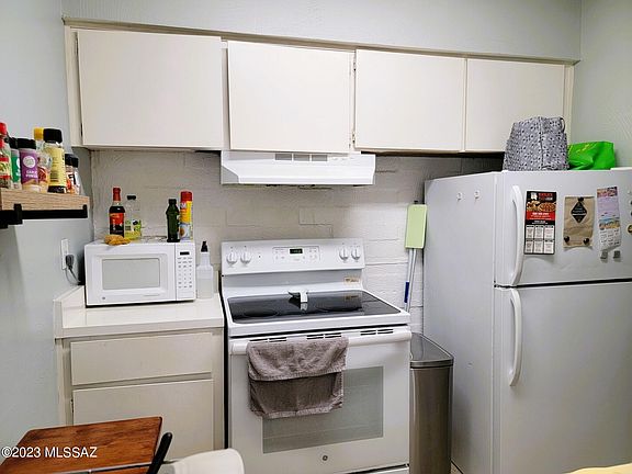 Prime location! Condo is just a block away from the University of Arizona main gate entrance. Awesome two-bedroom Retro condo. Fully furnished. If your are not into the Retro look, the seller has priced his condo $43,900 below the current listing prices so you can upgrade to your desired decor in the summer of 2024. Original 60's kitchen with white appliances. Bedrooms are huge (approx 15'3'') with large closets. Bathroom layout has separate cabinets and sinks, for you and a roommate. Powder room located off main living area, so guests do not have to enter your private bedroom area. AC unit replaced in 2018. Sheet vinyl throughout for easy cleaning. Campus Walk is steps to Main Square featuring numerous restaurants, shops and the trolley to 4th avenue & downtown.