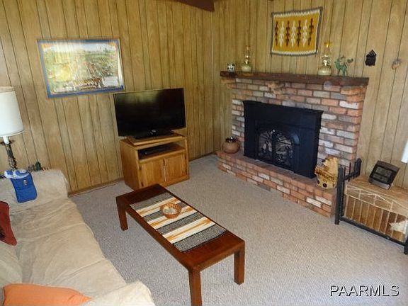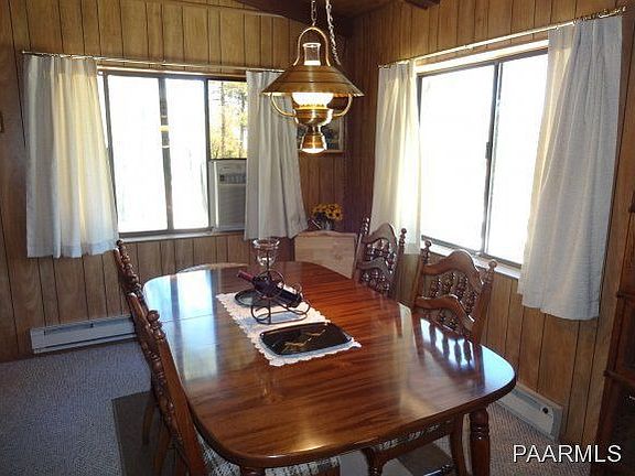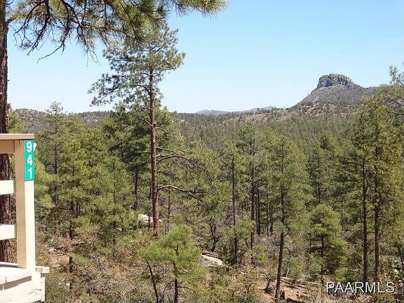 Tucked Privately Away with amazing VIEWS of THUMB BUTTE from your front deck. Extremely well kept cabin in the tall pines of Highland Pines. 2 bedrooms, 2 baths, recently installed Vermont propane fireplace insert, ceiling fans, newer Berber carpeting, dual pane windows, window A/C & electric baseboard heating. $199,000.