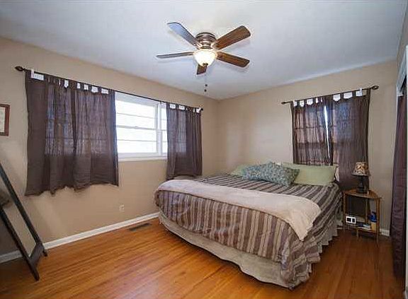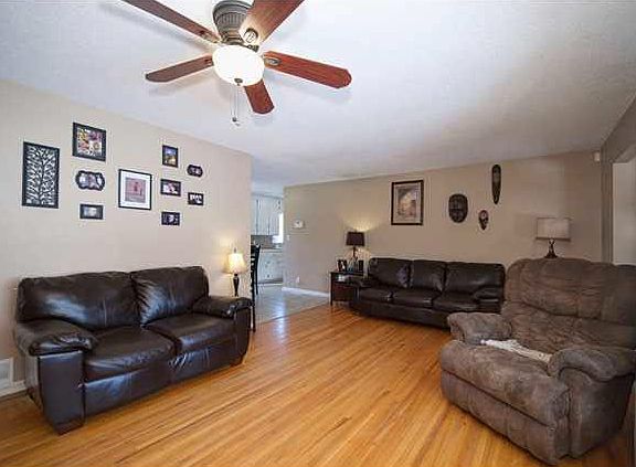 Must see beautiful house updated though out with neutral colors! New tile and oiled bronzed fixtures with pedestal sink in the bathroom. Hardwood floors though out most of the home with update light fixtures. Kitchen also updated. Basement is finished with a large rec room that is carpeted plus a separate area for storage and laundry room. Professionally landscaped yard. It is hard to tell this time of year but lots of beautiful plants. Also you can enjoy the inviting covered porch. Great house all around with walking path behind the house. Also the refrigerator in the garage stays. As for the window coverings they will take the curtain in the living and dining area. They will replace with white curtains.
