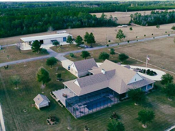 One of the most prestigious ranch and game preserves in Florida. This upscale property consists of 105 beautiful acres. Rustic Elegance, custom brick ranch house with attached 2 story garage with bonus room & large screened-in swimming pool. The inside of this home looks like a ski/hunting lodge with beautiful craftsmanship throughout, solid pine wood walls with beamed cathedral ceiling & double sided stone fireplace. There are custom built gun cabinets & a fully equipped wet bar. The 60x160ft professionally constructed workshop has four overhead doors, office space, & parking for a large RV. Approx. 65 acre pasture, fenced and cross fenced. The property has stocked ponds, planted pines, seeded bird fields & deer feeding stations. This beautiful ranch house & land is a hunter's paradise,