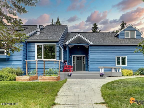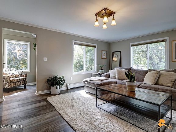 This modern bungalow, re-imagined, seizes sunny space from the former attic. The beautifully remodeled contemporary interior by Mark Ivy & Catherine Call features a stunning gourmet kitchen w/cooking island, custom maple cabinets, massive granite counters, Viking appliances & fabulous bar area perfect for entertaining family & friends. Full south exposure & oversized windows flood sunshine thruoutA spacious dining area and large living room with a cozy niche to enjoy a fire, offer custom maple built-ins for treasures, books and collections. The original south-facing entryway was converted to an inviting reading nook. A practical mudroom with built-ins for coats, boots, gloves is between the kitchen, garage and entry. It might be practical but is also beautiful with lovely maple cabinets and walls. A full bath with claw tub completes the first floor and serves as powder room and bath for a second floor bedroom. The lovely master suite features two closets, custom built-ins and a mountain view. The light-filled private bath features a wonderful steam shower. Be sure to check out the extra "hidden" storage areas built into the eaves of the attic accessed from within each closet. The lower level offers a large recreation room, oversized laundry and storage pantry, plus two spacious bedroom and a 3/4 bath. Upstairs you will find a sunny studio, perfect for yoga, a playroom or a quiet get-a-way. New luxury vinyl plank flooring throughout main living areas and lower rec room, slate tile in the entryway and newer carpets bring warmth to the home. Two porches on the west and the new south side Trex deck welcome family and friends and offer perfect spots to enjoy a cup of coffee or glass of wine. Old growth trees and shrubs including a gorgeous hydrangea bring colorful flowers and trees to enjoy every spring and summer. The large lawn is the perfect gathering spot for family and friends. Located only a few blocks from Anchorage's favorite shops, Fire Island Bakery & New Sagaya Market, & just around the corner to the Chester Creek and Coastal Trail system. Downtown and the Delaney Park Strip is just a few blocks away. New roof in May 2021. Front stamped concrete walkway is plumbed for heat. Home is wired for security system. Old Anchorage meets New contemporary design. Come home to 941 West 16th Avenue.