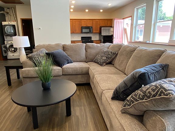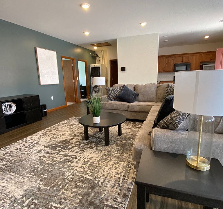 The expansive open-concept living room invites you to relax on our generously sized sectional, providing ample seating for you and your guests. Everything you see in our furnished pictures is included in this amazing apartment, ensuring you have all you need.