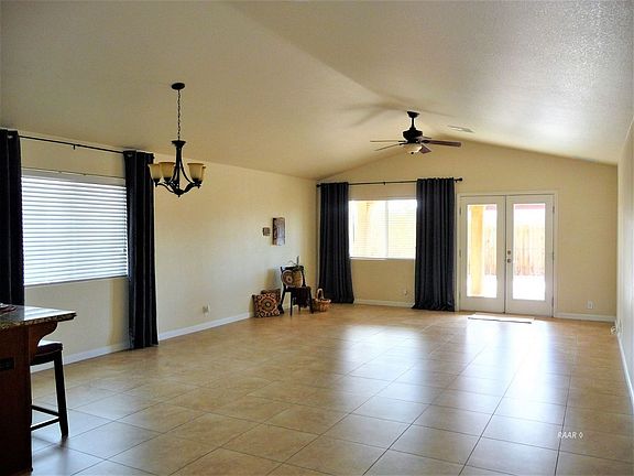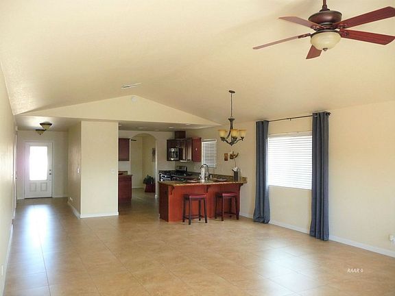 Newer 2010, Aspen built home 3 bed/2 full baths. Enter into the large open floor plan, cathedral ceilings, & spanish styled archways. Tiled flooring; open kitchen, dining & living space flows through to the french doors out onto the covered arched patio & backyard. You will love the mountain views from the back w/no bldgs/neighbors behind the entire desert stretch of the homes. At build the 4th bed was converted w/ 3 1/2 ft wide archway openings,that flow through the kitchen & entry hall.. can use as a den, formal dining or office area. This room can be converted back into a 4th bed, closet area bump out is still there...used as a formal dining room it's a great place for china hutch or buffet. Stainless steel appliances... granite counter tops w/rich cherry cabinetry, window coverings & lighted ceiling fans throughout. Tankless, on demand hot water heater. Chocolate colored carpets in bedrooms. Master suite is spacious w/ cathedral ceilings, walk in closet, separate shower & soak in tub w/ separate closed lavatory. Backyard; firepit, pergola, covered patio, RV access gate. Indoor laundry, oversized 2 car garage w/ utility deep sink.