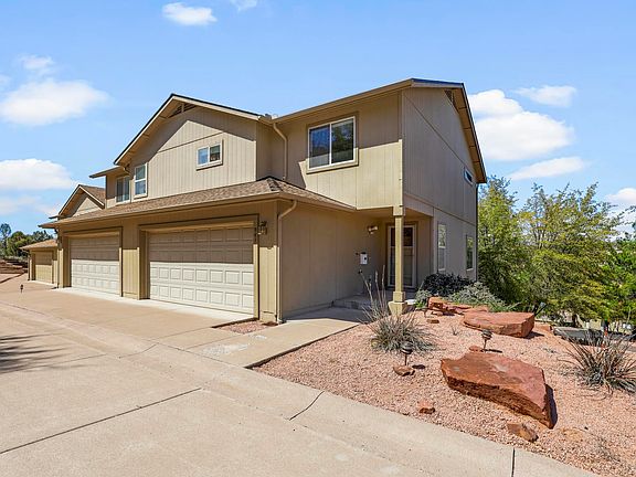 Views, Views and more amazing views of Green Valley Park and the Mogollon Rim. Watch the fireworks from your deck, or walk to the park, or sit on your deck and listen to Summer Saturday concerts in the park. This Gem offers open concept family room with fireplace, to kitchen and eat-in dining. Walk out onto the newer Trex deck from the family room and take in the views. A convenient half bathroom is located on the main level alongside a two-car garage. Upstairs offers primary bedroom with full bathroom, walk-in closet, and private deck, and an additional ensuite bedroom to accommodate guests. Laundry is conveniently situated in the hallway. Seller is offering $4,500.00 carpet/painting allowance with agreed and accepted offer. Easy to show, contact Listing Office today to schedule a showing for this property!