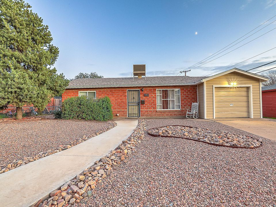 This home combines comfort, convenience, and character in one inviting package. Featuring 2 spacious bedrooms, a thoughtfully designed floorplan makes the most of every square foot. The bright, welcoming kitchen offers abundant cabinet space and a cozy breakfast nook. Step outside to an expansive backyard with a covered patio and mountain view, ideal for entertaining or relaxing at the end of the day. A single-car garage provides added convenience and storage, while the central location ensures easy access to shopping, dining, and all that Albuquerque has to offer. Notable upgrades include an Orangeburg sewer line replacement, water heater replacement 1/2023, an electrical panel upgrade to 200 amp service 1/2023 and roof maintenance 9/2025--providing peace of mind for years to come!