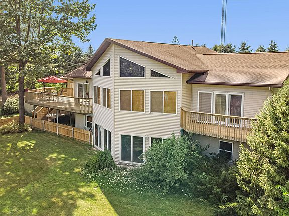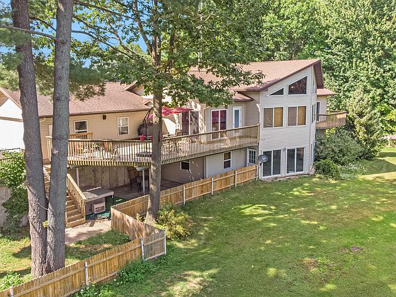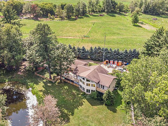 Open house Sunday August 23rd from 11:30-1:00 pm. Beautiful setting on private pond frontage. This beautiful 4 bedroom home features a master suite with access to a private deck,, main floor laundry, vaulted ceilings, custom kitchen,walkout basement with wet bar, rec room and theater room. Enjoy your own private island relaxing around the campfire or cast in a pole to catch a fish! Sit on your back porch soaking in your hot tub and enjoying the peacefulness. Gated entry for additional privacy. Township also provides free dumpster day, and gravel 4 times a year! Call today for a showing!
