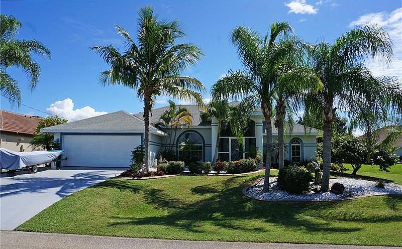 3 Bedroom, 2 Bath, 2 Car Garage pool home located in the much sought after SOUTH GULF COVE. This light and bright home offers an open and split bedroom Great Room floor plan with separate Dining Room, large eat in Kitchen. Design features include cathedral and vaulted ceilings, plant shelves, double door entry with transom window. 4 windows have lock down awning windows. The well appointed Kitchen has wood cabinets, stainless appliances, breakfast bar and dining area. The Master bedroom suite has a walk in closet, dual sinks and shower. The guest bedrooms are on the other side of the house and the guest bathroom has a tub/shower combo. Your living space extends to the screened lanai with inground POOL and SPA. Other features include beautiful tropical landscaping, fish pond at the front entry, fenced yard, screened front entry. Boat from your backyard to Charlotte Harbor from your wood DOCK with 13,000 lb BOAT LIFT. This is Florida living at it's finest!