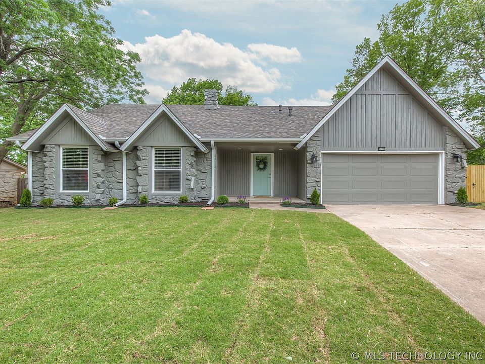 Extensively remodeled ranch style home in the desirable Jenks school district. This house boasts many NEWs: lifetime warranty roof, thermal windows, professional landscaping, privacy fence, waterproof vinyl floors, custom cabinets, upgraded stainless appliances, beautiful quartz countertops and LED Energy efficient lighting. Ceiling fans and walk-in closets in all 3 oversized bedrooms. One year home warranty included. Located on a quiet cul-de-sac with Tulsa’s best shopping and dining just minutes away!