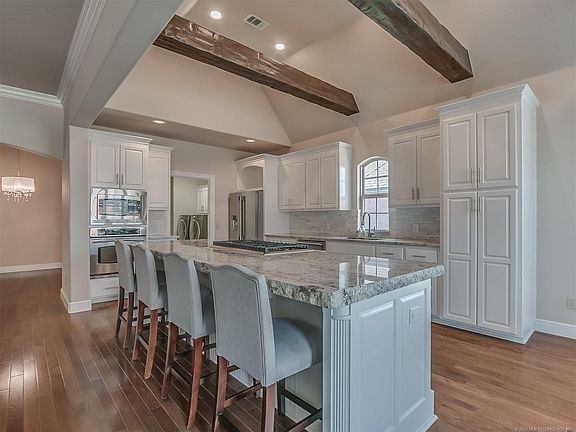 This is the one! In the highly sought after gated Ashton Hollow, this 5 bedroom 3 bathroom has it all! The living room has a stone fireplace, & it's open to the kitchen that boasts granite counter tops. The 9' ceilings are stunning, draw you in, & make you feel at home! The backyard has a full privacy fence. Close to all things Tulsa & The Creek Turnpike.