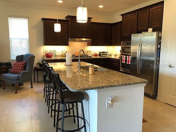 Outstanding opportunity to own a quality almost new home without building! Situated on sweeping green space professionally landscaped on 4 sides. Home offers over $34,000 in designer upgrades--including huge granite island, gourmet kitchen with staggered height cabinets and crown molding, undercabinet lighting, level 3 tile backsplash, all stainless appliances -- wall oven/ microwave combo, stainless dishwasher and side by side refrigerator. Level 2 ceramic tile flooring throughout, spacious great room with dining room, flex room with French doors, large master suite with handicap-capable roll in shower, chair height toilet, and tall vanities with stone tops. Five ceiling fans, solar shades in lanai, garage door screen, indoor laundry room plus garage laundry tub. Walking distance to Arbor fitness center, Olympic size indoor pool, outdoor walking pool and hot tub, Arbor dance studios, music room, billiards room, game center, card rooms, bocce courts, lighted tennis courts and Long Leaf nature trail. Fast occupancy.